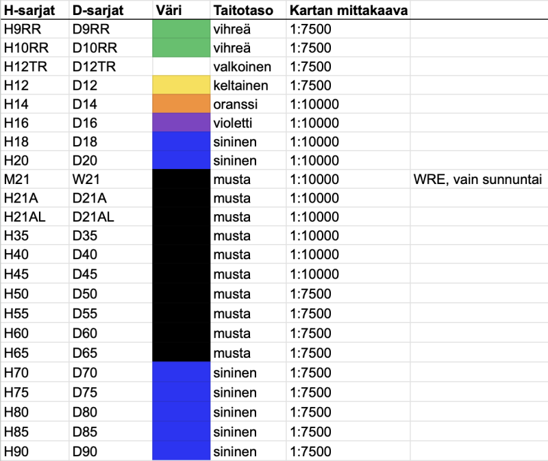 Väriasteikon kuvaukset Suunnistusliiton sivuilla.